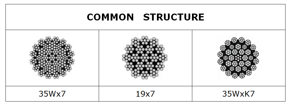 1.Common structure: 35Wx7, 35WxK7, 19x7, etc.