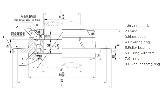 | Diameter of the Rudder Stock | d0 | d1 | d2 | D | D1 | D2 | t | h | h1 | h2 | H | H1 | Mounting Bolt | Weight | |