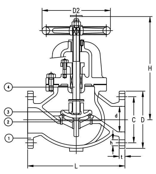 The products are used for controlling the medium to open and close , preventing refluence in fuel oil piping, lubricating piping at temperatures 205℃ or less. Dimensions of flange are according to JIS B2220 flange dimensions of steel pipe.